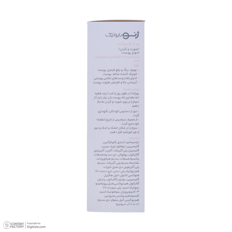 سرم پوست ژنوبایوتیک مدل نیاسینامید حجم 30 میلی لیتر