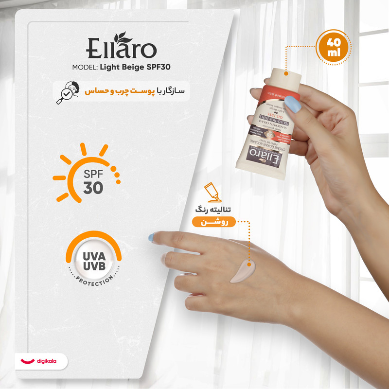 کرم ضد آفتاب رنگی الارو مدل Light Beige SPF30 تحت لیسانس حجم 40 میلی لیتر