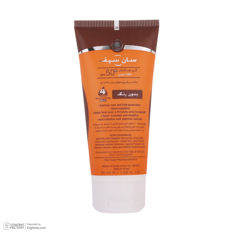 با میزان SPF 50، این کرم محافظت بالایی در برابر اشعههای UVB ارائه میدهد که اصلیترین عامل آفتابسوختگی و آسیبهای سطحی پوست است. علاوه بر این، درجه PA+++ نشاندهنده محافظت قوی در برابر اشعههای UVA است، که میتوانند به عمق پوست نفوذ کرده و باعث پیری زودرس و مشکلاتی مانند هایپرپیگمانتاسیون شوند. بنابراین، استفاده از این کرم به کاهش چین و چروک و لکههای تیره کمک میکند و سلامت و جوانی پوست را حفظ میکند. کرم ضدآفتاب سانسیف بدون رنگ است، که این ویژگی برای کسانی که به دنبال یک کرم ضدآفتاب بدون اثر سفیدکنندگی هستند، بسیار مناسب است. این محصول به راحتی جذب پوست میشود و اثری از چربی یا سنگینی روی پوست باقی نمیگذارد. به همین دلیل، برای استفاده روزانه کاملاً مناسب است، چه به عنوان یک محافظتکننده مستقل و چه به عنوان پایه آرایش.