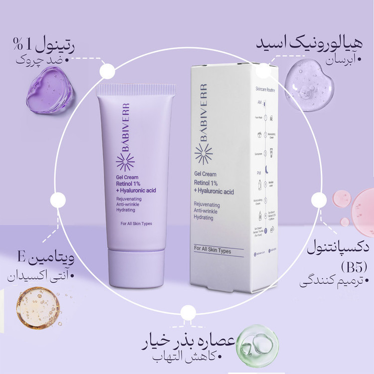 کرم ژل ضد چروک باب ایور مدل رتینول 1٪ و هیالورونیک اسید مناسب برای انواع پوست حجم 40 میلیلیتر