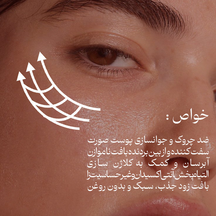 جوان کننده , افزایش قابلیت ارتجاعی پوست , کلاژن ساز , لایه بردار , آبرسان , ضد التهاب و آرامش بخش , جذب سریع