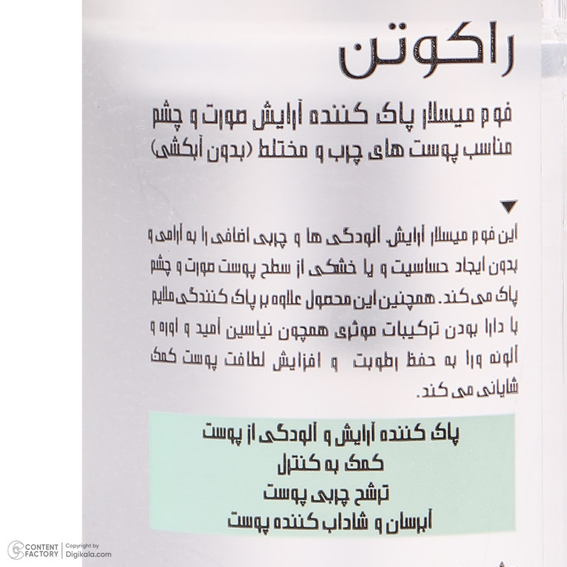 میسلار واتر راکوتن مدل FOAMING مناسب برای پوست های چرب و مختلط حجم 200 میلی لیتر