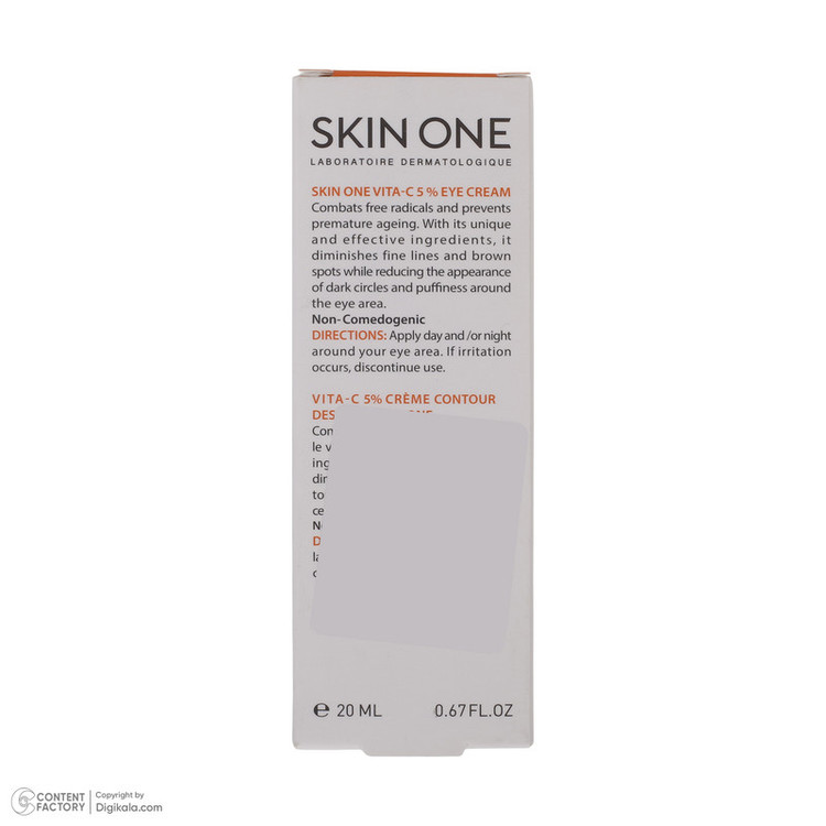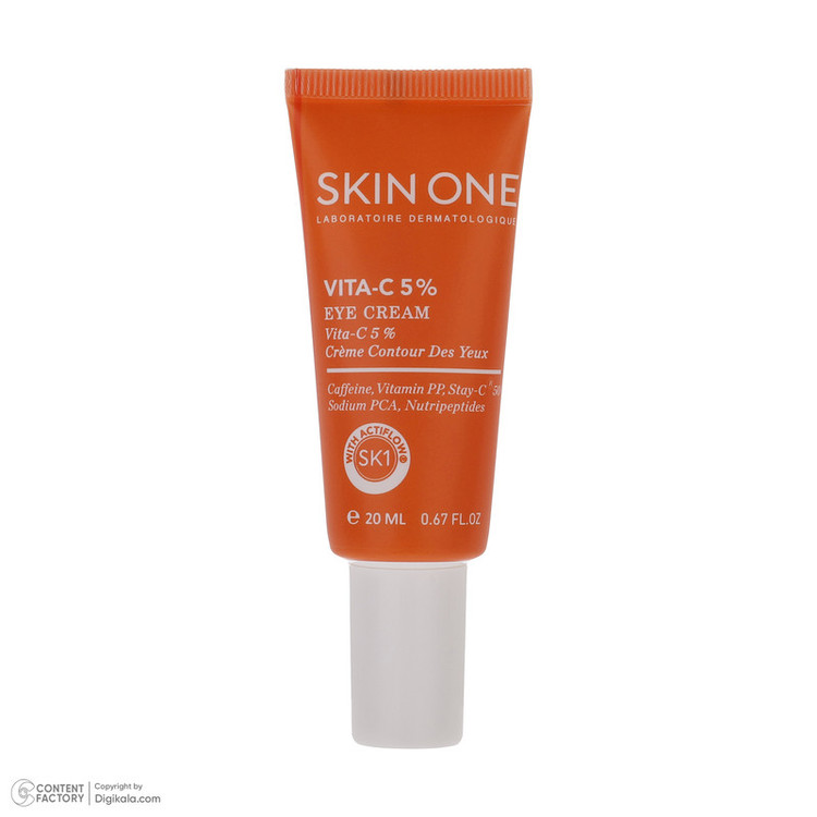 از کرم دور چشم ویتامین سی اسکین وان صبح و شب با حرکات ضربه ای ملایم اطراف چشم استفاده کنید.