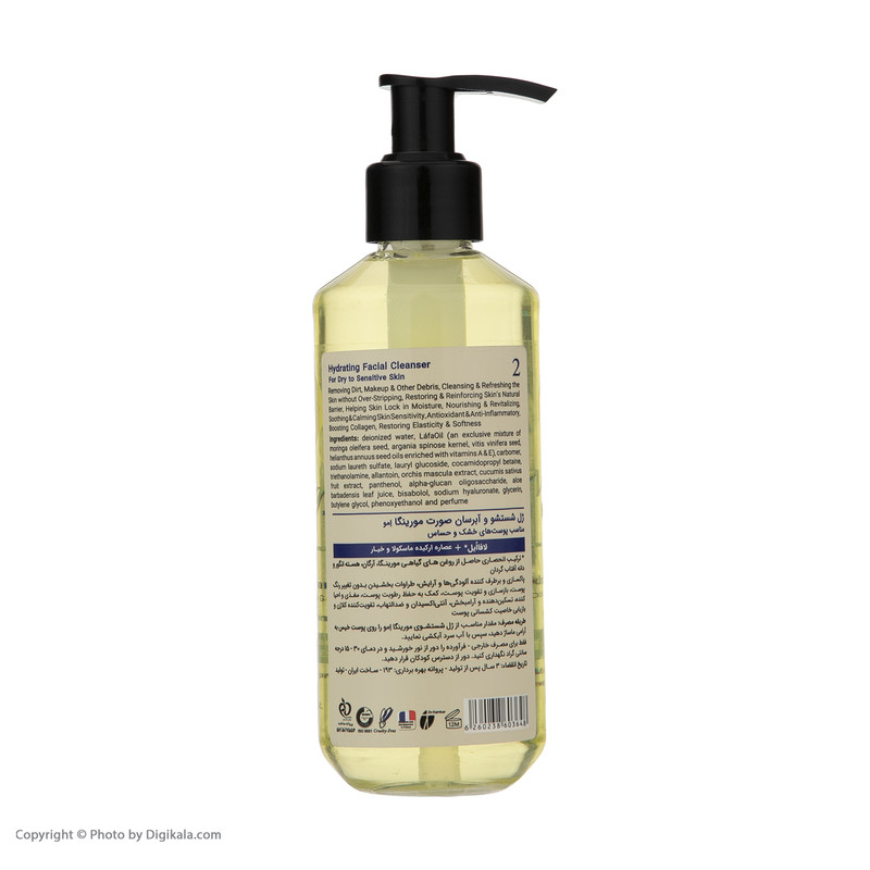 ژل شستشو و آبرسان صورت مورینگا اِمو F02 علاوه بر پاک کردن آرایش و آلودگی با حفظ خاصیت اسیدی و رطوبترسانی به پوست به بهبود خشکی آن کمک میکند. همچنین این محصول، سبب بهبود ساختار پوست، شفافیت و کاهش التهاب آن میشود.