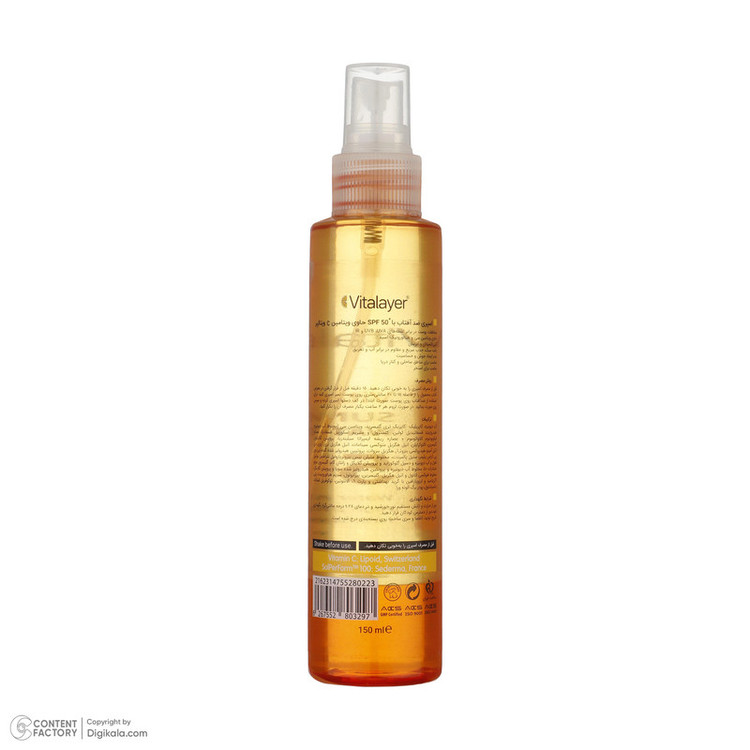 اسپری ضدآفتاب بدون رنگ ویتالیر با SPF 50 یکی از محصولات برتر در زمینه مراقبت از پوست است که به راحتی هر نوع پوستی را در برابر اشعههای مضر UVA و UVB محافظت میکند. این محصول با حجم 150 میلیلیتر و ماندگاری 2 ساعته، برای استفاده بر روی صورت و بدن طراحی شده و به خصوص برای بانوان و آقایان مناسب است. ویژگیهای منحصربهفرد اسپری ویتالیر شامل عدم رنگدهی به پوست، بافت سبک و جذب سریع است که تجربهای لذتبخش از استفاده روزانه را به ارمغان میآورد. وجود ویتامین سی و هیالورونیک اسید در ترکیب این محصول، آن را به یک آنتیاکسیدان قوی و آبرسان موثر تبدیل کرده که علاوه بر حفاظت، به تغذیه و ترمیم پوست نیز کمک میکند. بستهبندی پلاستیکی و اسپریای این ضدآفتاب، استفاده آسان و یکنواخت را ممکن میسازد. با مقاومت بالا در برابر آب و تعریق، این محصول گزینهای ایدهآل برای استفاده در مناطق ساحلی، کنار دریا و استخرها است. همچنین، عدم ایجاد جوش و حساسیت، این محصول را برای انواع پوست، حتی پوستهای حساس، مناسب میسازد. ویتالیر با مجوز رسمی از سازمان غذا و دارو و تولید شده در ایران، تضمینی برای کیفیت و اطمینان از سلامت پوست شما است.