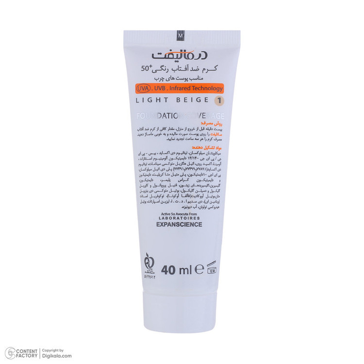 ویژگیهای ضدآفتاب : ضد آب , محافظت کننده در برابر اشعه UVA , محافظت کننده در برابر اشعه UVB , مرطوب کننده