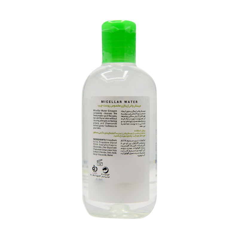 میسلار واتر ژیناژن بدون ایجاد حساسیت و یا احساس چرب بودن به طور کامل آرایش سنگین چشمها و لبها و پوست صورت را پاک کرده و به واسطه عصاره بابونه طراوت و شادابی را به پوست شما هدیه میدهد.
