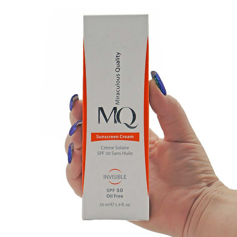 محصولات MQ ساخته شده از مواد با کیفیت می باشد. این محصولات در یکی از معتبرترین لابراتوارهای فرانسه و زیر نظر اساتید فن در صنعت مراقبت از پوست و مو فرموله شده است. این کمپانی کرم های ضد آفتاب خود را روانه بازار کرده است که ساخته شده از مرغوبترین و جدیدترین مواد اولیه و دارای حداکثر حفاظت در برابر پرتوهای مضر آفتاب هستند. این محصولات دارای ساختاری سبک بوده و در عین حال به دلیل داشتن ترکیبات مرطوب کننده قوی و ضد چروک، نرمی و لطافت را به پوست بازمی گرداند. یکی از این محصولات، کرم ضد آفتاب فاقد چربی SPF 50 است. که در چهار رنگ صورتی، بژ طبیعی، بژ روشن و بدون رنگ موجود است. این ضد آفتاب مناسب پوست های چرب و مستعد جوش و آکنه است که در مقابل تعریق مقاوم است همچنین دارای ساختاری بسیار سبک است که محافظ قوی پوست در برابر تاثیرات مخرب اشعه های مضر UVA و UVB به حساب می آید. و از آنجایکه برای پوست های چرب و مستعد جوش و آکنه ساخته شده است، دارای خاصيت ضد میکروبی و تنظیم کننده ترشح چربی پوست است. علاوه بر این از خاصیت مات کنندگی و ضد براقی پوست برخوردار است. جهت استفاده نیم ساعت قبل از قرار گرفتن در معرض اشعه آفتاب روی پوست تمیز مالیده شود و هر دو ساعت یکبار آن را تجدید کنید.