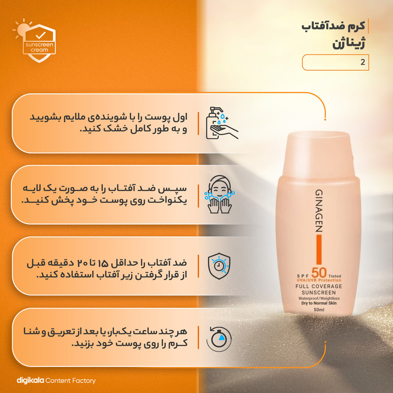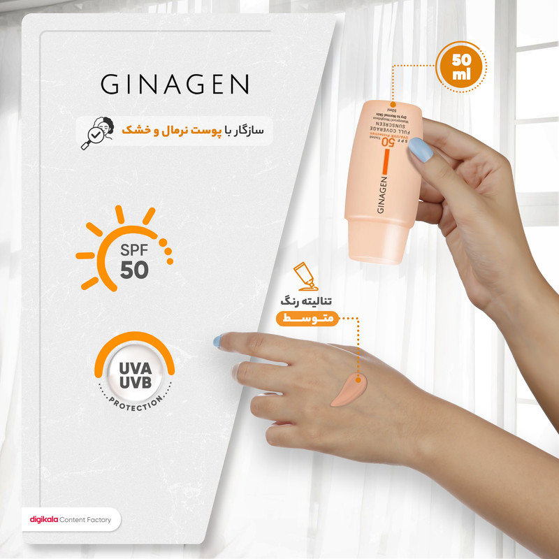 کرم ضدآفتاب ژیناژن سری dry to normal skin مدل 02، حجم 50 میلی‌لیتر