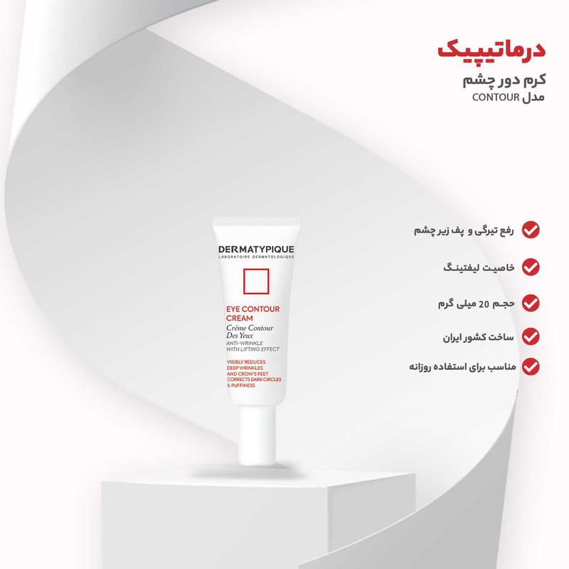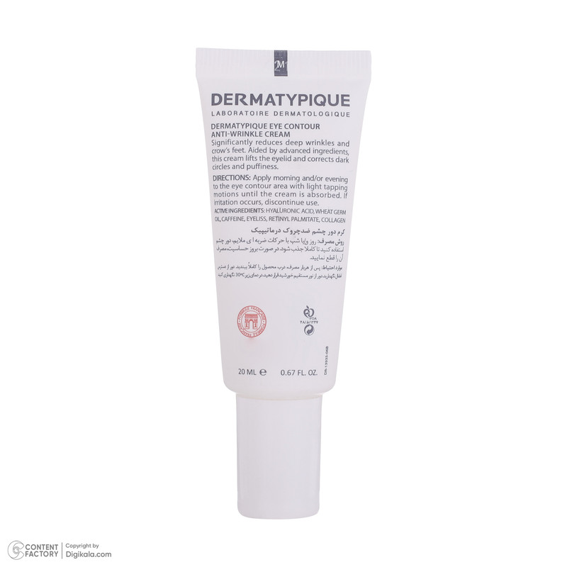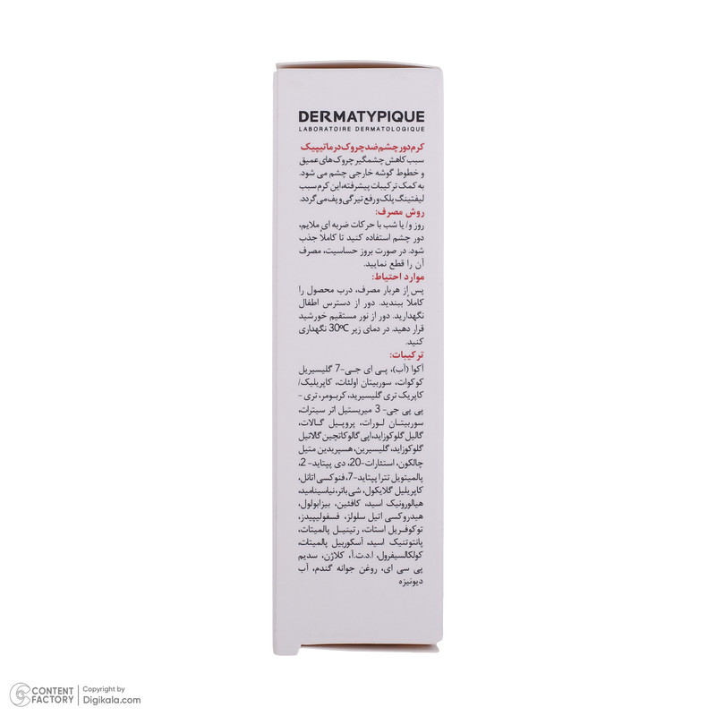 خواص: کرم دور چشم درماتایپیک سبب کاهش چشم گیر چروک های عمیق و خطوط گوشه خارجی چشم می شود.