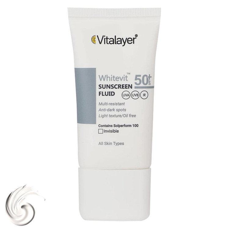 فلوئید ضدآفتاب بیرنگ ویتالیر SPF50 مدل Whitevit مناسب انواع پوست، حجم 50 میلیلیتر