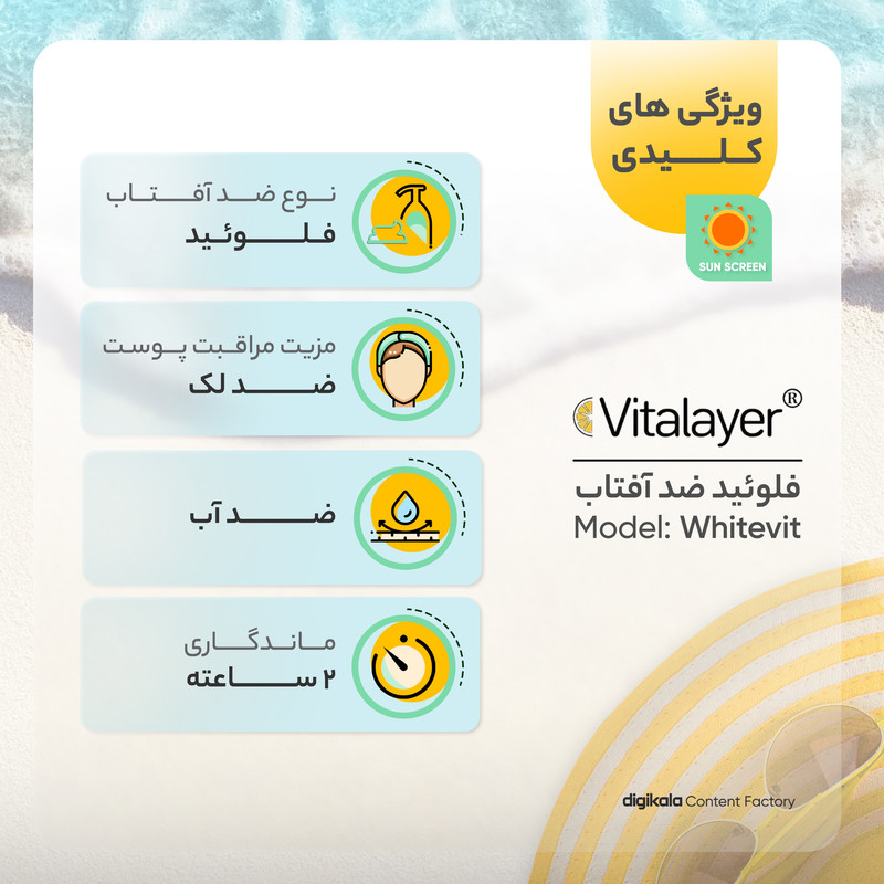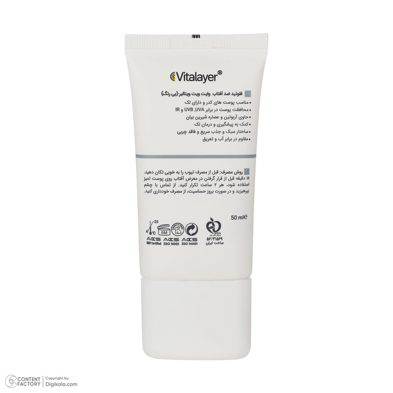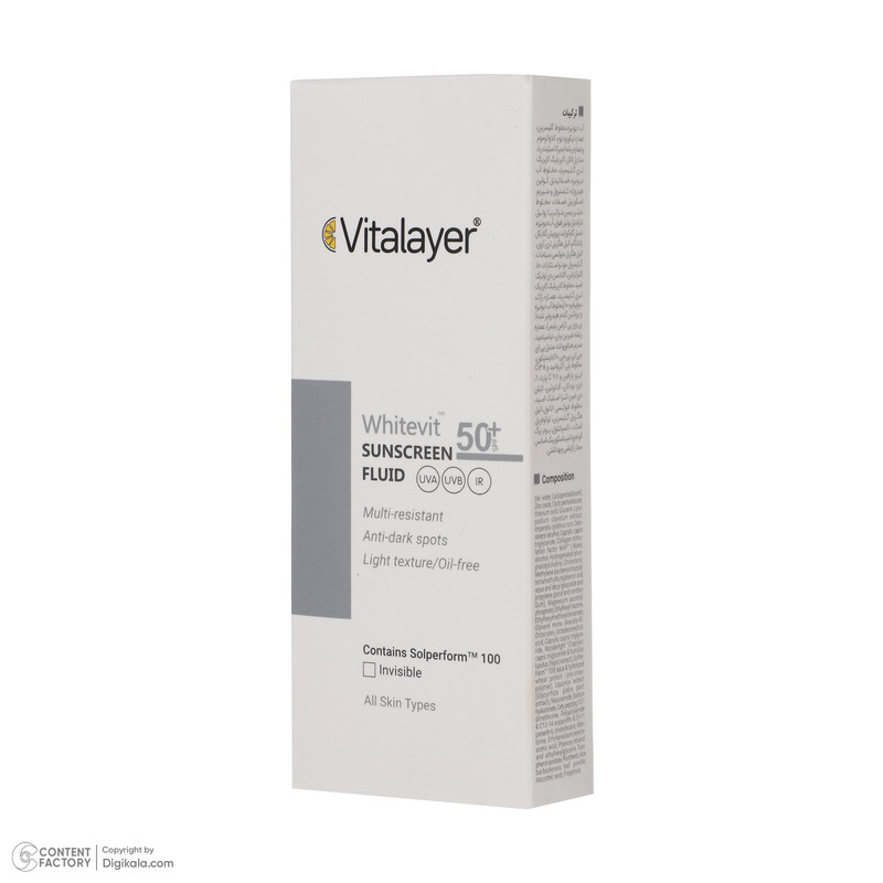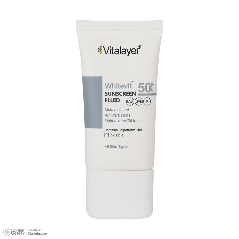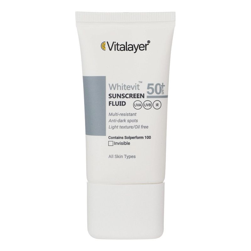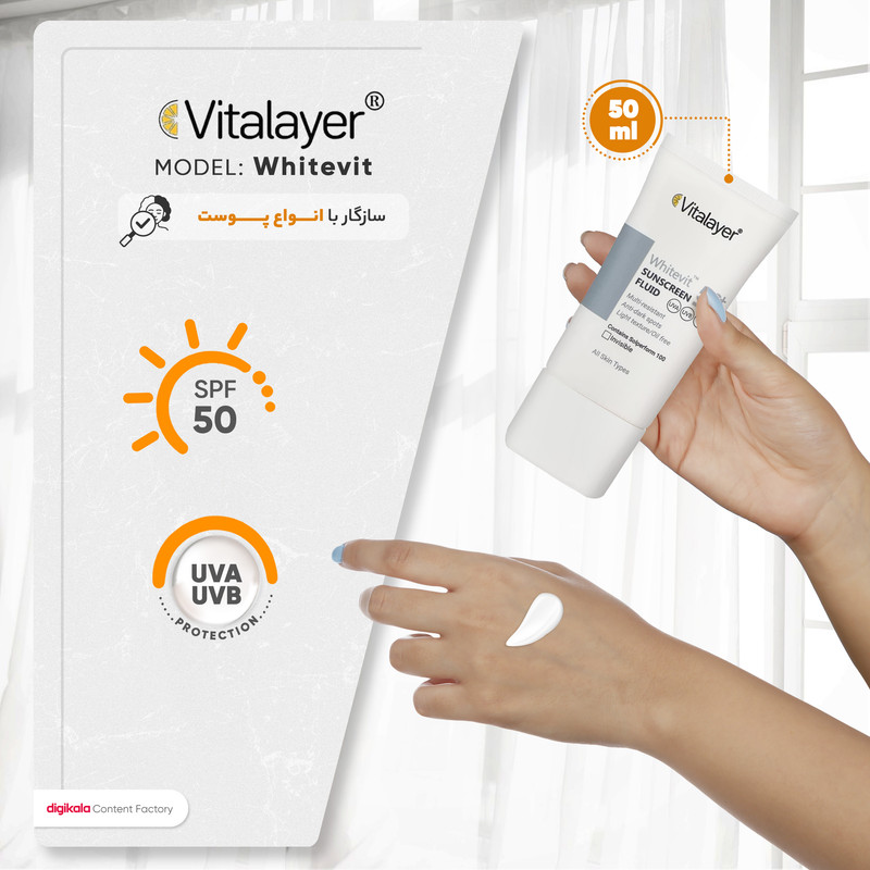 فلوئید ضدآفتاب بیرنگ ویتالیر SPF50 مدل Whitevit مناسب انواع پوست، حجم 50 میلیلیتر