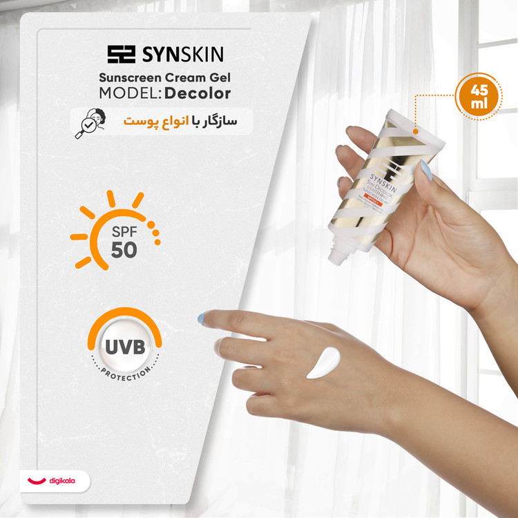 ژل کرم ضد آفتاب بدون رنگ ساین اسکین SPF50 مدل Decolor محافظ UVA ،UVB، روشن‌کننده، مناسب انواع پوست حجم 40 میلی‌لیتر